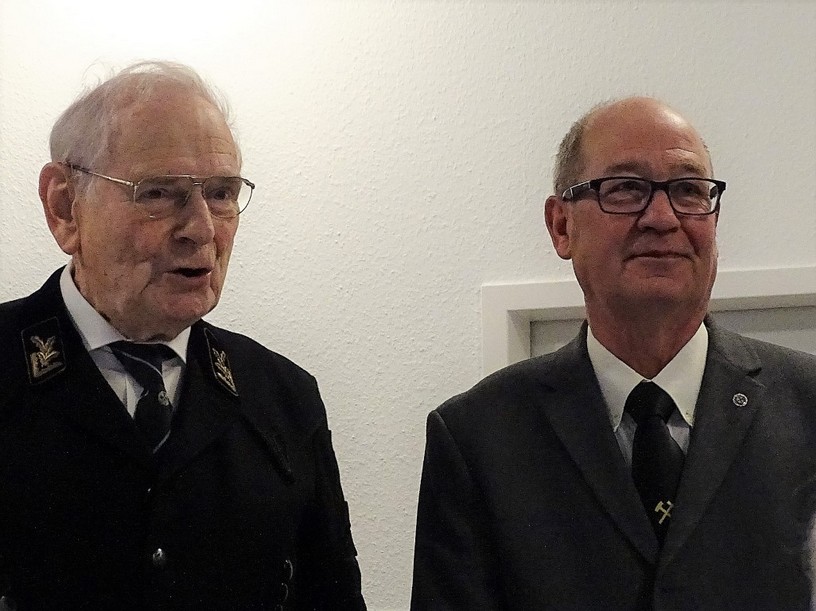 Nach einigen Grußworten nahm Karl Richard Haarmann die Liedgeschichte des Harzer Bergmannslied „Glückauf, ihr Bergleut jung und alt“ zum Anlass die gemeinsame Arbeit von alten und jungen Bergleuten an den Arbeitsstellen unter Tage zu beschreiben. So haben Bergleute (Knappen) immer von der Erfahrung der alten Hauer gelernt. Im Anschluss führte er gemeinsam mit dem Vorsitzenden des BV Lünen Bernd Schulte die Jubilar Ehrung verdienter Mitglieder durch.