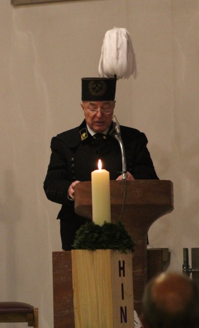 Für die musikalische Begleitung sorgte der evangelische Posaunenchor Unna-Königsborn unter der Leitung von Rainer Otto. Der Männergesangsverein Harmonie Zeche Victoria stand uns leider aufgrund der Auflösung nicht mehr zur Verfügung. Die imposanten Auftritte werden uns fehlen. An dieser Stelle gilt unser besonderer Dank Ingulf Scholz, der durch seinen unermüdlichen Einsatz auch im 26. Jahr dafür sorgte, dass unsere Barbarafeier in diesem feierlichen Rahmen stattfinden konnte. Eine für den guten Zweck gesammelte Kollekte wurde Pastor Wallek zur Unterstützung des ‘Jordan- Treff“ am Franziskaner Kloster in Dortmund, übergeben. Das Gemeindehaus wurde wieder von Herrn Hubert Dubielczyk von der Grubenwehrvereinigung Victoria 1/2 Lünen mit bergbaulichen Motiven (aus den Jahren 1950-1970) ausgestaltet. Im Anschluss an die Barbarafeier wurden die Teilnehmer der ökumenischen Barbarafeier zu einem Tscherper-Mahl in das Johanneshaus der Gemeinde eingeladen. Die Betreuung der Gäste mit Speisen und Getränken übernahm die Frauengemeinschaft (Kfd) der Kirchengemeinde. Ein gut gefülltes Gemeindehaus wurde so hervorragend versorgt.