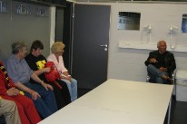In der Umkleidekabine des BvB`s lauschten alle Teilnehmer den wahre Geschichten aus dem Fußballerleben von Aki (Alfred) Schmidt.