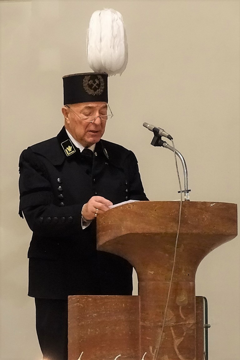 Nach einigen Grußworten nahm Karl Richard Haarmann die Liedgeschichte des Harzer Bergmannslied „Glückauf, ihr Bergleut jung und alt“ zum Anlass die gemeinsame Arbeit von alten und jungen Bergleuten an den Arbeitsstellen unter Tage zu beschreiben. So haben Bergleute (Knappen) immer von der Erfahrung der alten Hauer gelernt. Im Anschluss führte er gemeinsam mit dem Vorsitzenden des BV Lünen Bernd Schulte die Jubilar Ehrung verdienter Mitglieder durch.