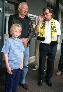 Pünktlich zum "Spielbeginn" traf derAltinternationale, die Borussenlegende Aki (Alfred) Schmidt ein.