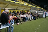 In der Umkleidekabine des BvB`s lauschten alle Teilnehmer den wahre Geschichten aus dem Fußballerleben von Aki (Alfred) Schmidt.