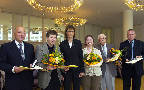 Bürgermeister Jörder (3.v.l.) mit Ingulf Scholz, Karl Kopeka, Renate Patzelt, Günter Henning, Hans-Jürgen Prinz (v.l.).