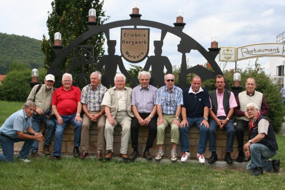 Ausgerüstet mit Helm und Fahrkittel gelangten wir mit dem Förderkorb auf die – 500m - Sohle. Hier gilt übrigens nicht die Regel wie im Steinkohlenbergbau: „mit 60 Jahren keine Seilfahrt mehr“. Gott sei Dank, denn das Durchschnittsalter unserer Gruppe lag bei 71,4 Jahren.