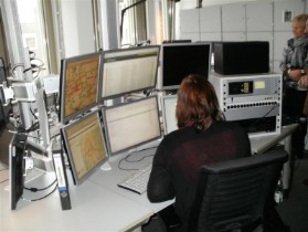 In dem Verkehrsstudio laufen alle Daten der aktuellen Verkehrsmeldungen durch die Polizei als auch von automatischen Stationen, die die Verkehrsentwicklung kontinuierlich wiedergeben auf.